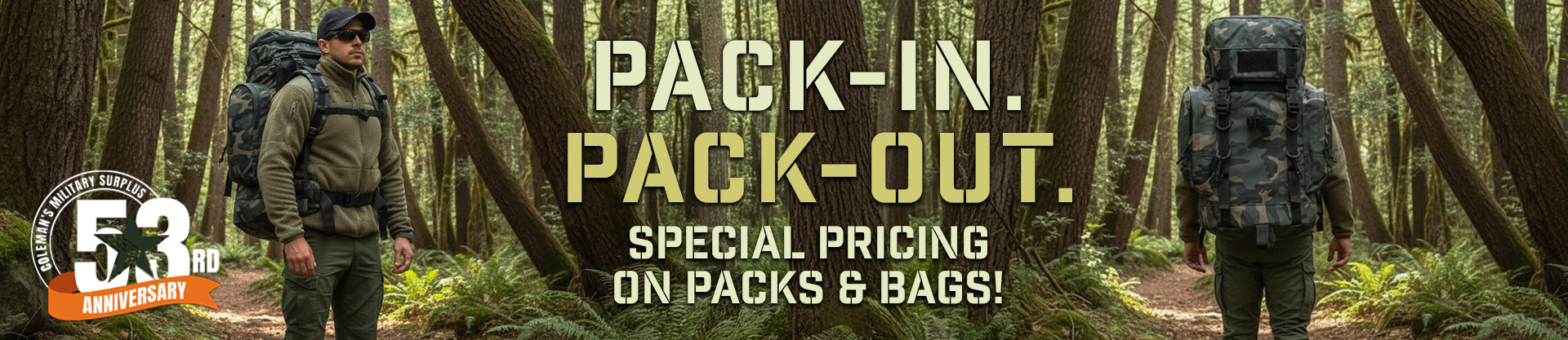 As part of our 53rd Anniversary celebration, we’re rolling out special pricing on packs and bags you can count on. From field-tested rucksacks to versatile carryalls, these surplus finds are built for the long haul. Pack in what you need, pack out what matters, and take advantage of these anniversary savings while they last.